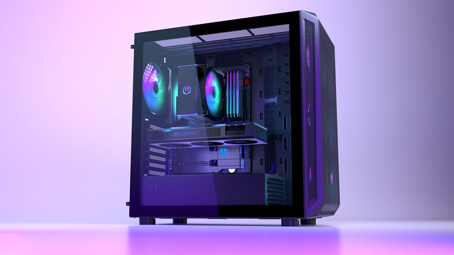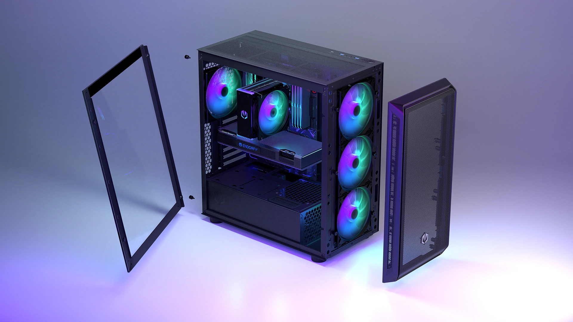 Jedná se zatím o největší dostupnou PC skříň (486 × 228 × 472 mm) s logem ENDORFY. Arx 700 ARGB se bude skvěle hodit pro vaše komponenty - například vysoký systém chlazení (až 179 mm), 8 ventilátorů (včetně 4 Stratus 140 PWM ARGB, které dostanete pro začátek) a prakticky jakoukoli dostupnou grafickou kartu (až 410 mm). Zároveň je udržuje v lehkém průvanu, jako svěží ranní vánek na horské louce - díky síťovaným panelům na přední a horní straně.