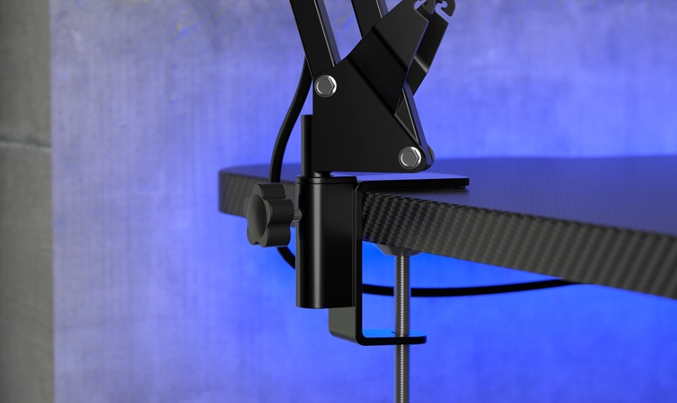 Víme, jak cenný může být každý centimetr prostoru na stole. Když se snažíte ovládnout svět, není prostor pro chyby. Proto jsme přidali robustní nastavitelné rameno – můžete na něj připevnit mikrofon a uvolnit tak místo pro jiné důležité věci.