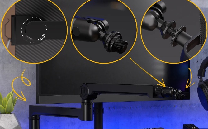 Rameno také obsahuje vestavěný kanál pro vedení kabelů, který vám pomůže vyhnout se zbytečnému zamotání kabelů nebo nepořádku s kabelovými sponkami, které v minulosti frustrovaly mnoho tvůrců obsahu.