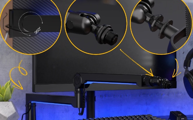 Díky kulové hlavě a 360° kloubům můžete mikrofon umístit kamkoli potřebujete, aniž byste byli omezeni rozměry ramene. Naše konstrukce bez použití nářadí a uzamykací systém také zajistí, že vaše zařízení zůstane na místě, aniž byste museli neustále provádět úpravy nebo se potýkat s klíči a šroubováky.