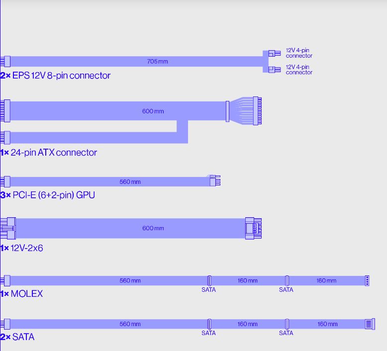 Zapomeňte na nepoužívané kabelové svazky. Tato plně modulární kabeláž vám umožňuje připojit pouze potřebné kabely. Výsledkem je zefektivnění procesu vedení kabelů a lepší využití prostoru v počítačové skříni, což zlepšuje proudění vzduchu a regulaci teploty.