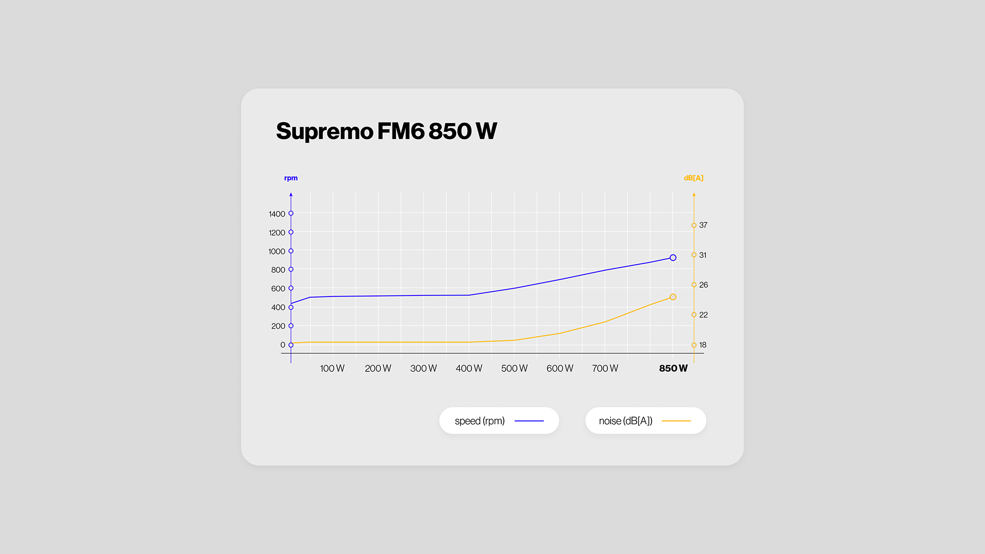 Supremo FM6 850 W byl navržen s ohledem na maximální pohodlí uživatele. Díky optimalizovanému uspořádání komponent, které zefektivňuje proudění vzduchu, a vysoce výkonnému chladicímu systému pracuje zdroj výjimečně tiše a udržuje si nízkou teplotu i při plném zatížení.