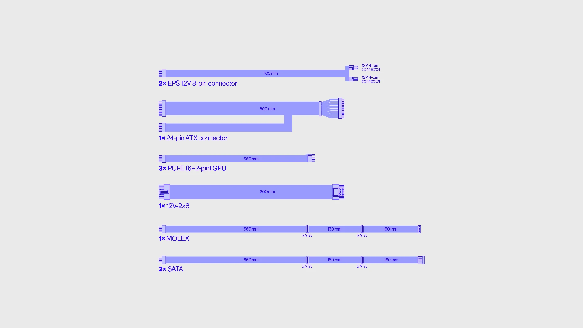 Zapomeňte na nepoužívané kabelové svazky. Tato plně modulární kabeláž vám umožní připojit pouze potřebné vodiče. To vede k zefektivnění procesu vedení kabelů a zlepšuje správu prostoru v počítačové skříni, čímž se zlepšuje proudění vzduchu a regulace teploty.