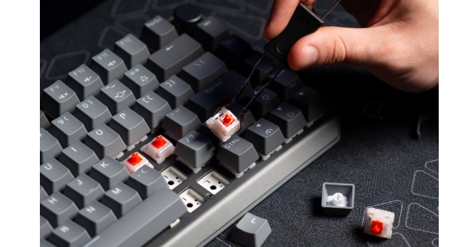 Thock V2 75 % je dodáván s kompletní sadou příslušenství. V balení najdete kromě klávesnice a USB kabelu také nástroje pro snadnou výměnu kláves a spínačů. Pro všechny případy jsme přibalili také dva náhradní spínače ENDORFY Red.