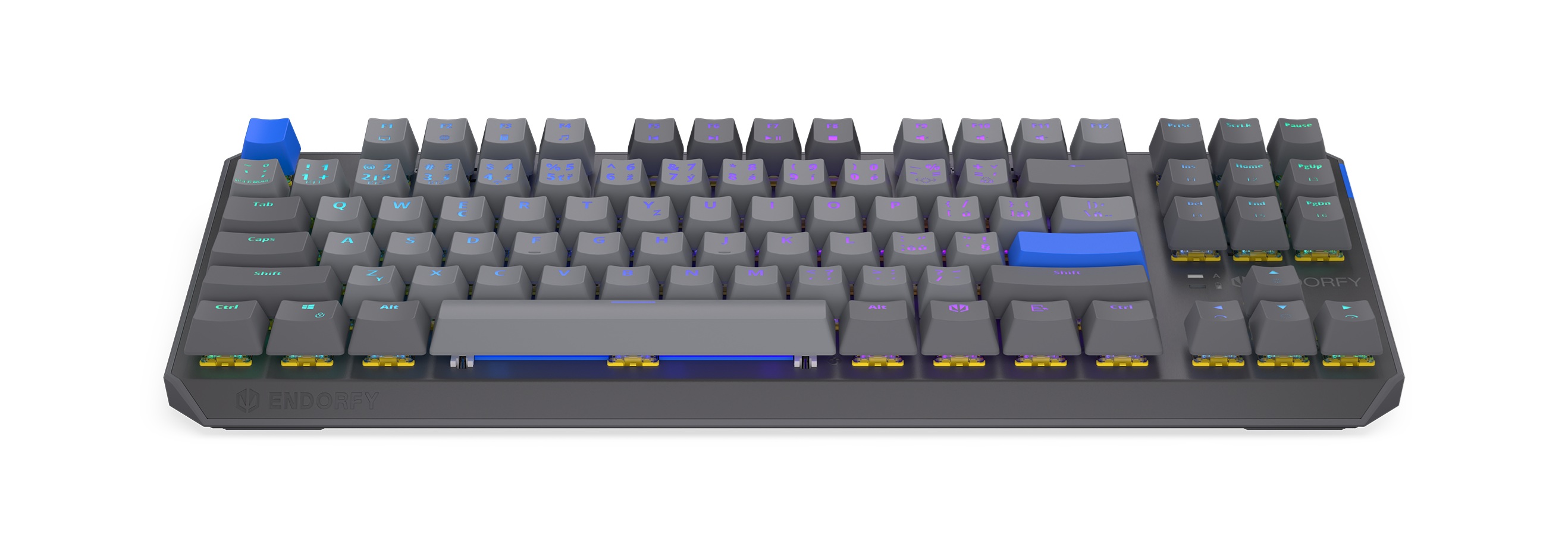 Thock V2 TKL Wireless je vybaven speciálními lineárními spínači vyvinutými ve spolupráci s Gateron — exkluzivními ENDORFY Yellow, které byly poprvé představeny v našem vlajkovém modelu Celeris 1800. Spínače poskytují výjimečnou hladkost a přesnost. Díky továrně namazanému designu s dvojitou kolejnicí, nylonové základně a dvoustupňové pružině je každý úhoz plynulý a zní hluboce a teple. V kombinaci s předem namazanými (a vylepšenými) stabilizátory pod každou dlouhou klávesou je výsledkem skutečně rafinovaný a uspokojivý zážitek z psaní.