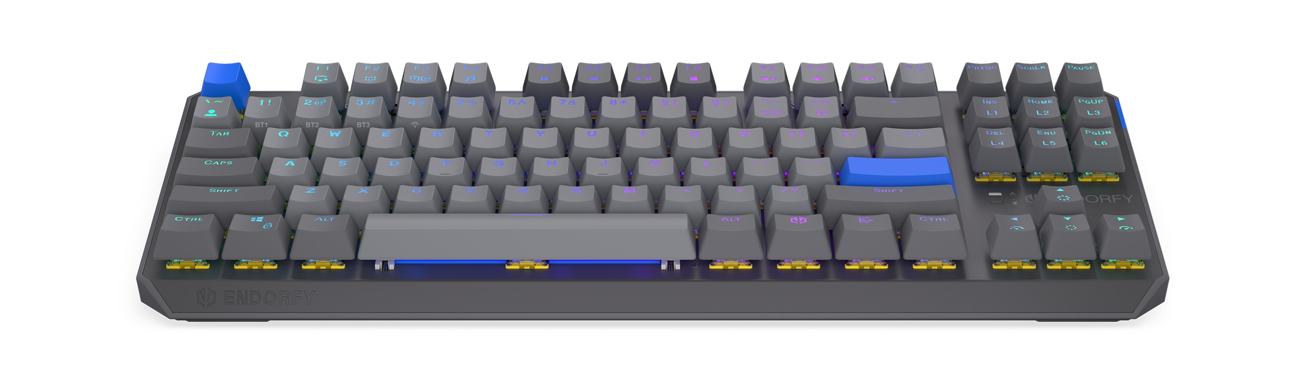 Thock V2 TKL Wireless je vybaven speciálními lineárními spínači vyvinutými ve spolupráci s Gateron — exkluzivními ENDORFY Yellow, které byly poprvé představeny v našem vlajkovém modelu Celeris 1800. Spínače poskytují výjimečnou hladkost a přesnost. Díky továrně namazanému designu s dvojitou kolejnicí, nylonové základně a dvoustupňové pružině je každý úhoz plynulý a zní hluboce a teple. V kombinaci s předem namazanými (a vylepšenými) stabilizátory pod každou dlouhou klávesou je výsledkem skutečně rafinovaný a uspokojivý zážitek z psaní.