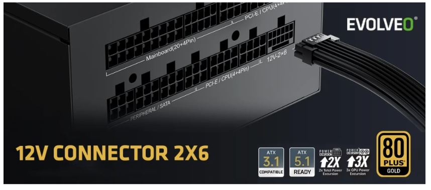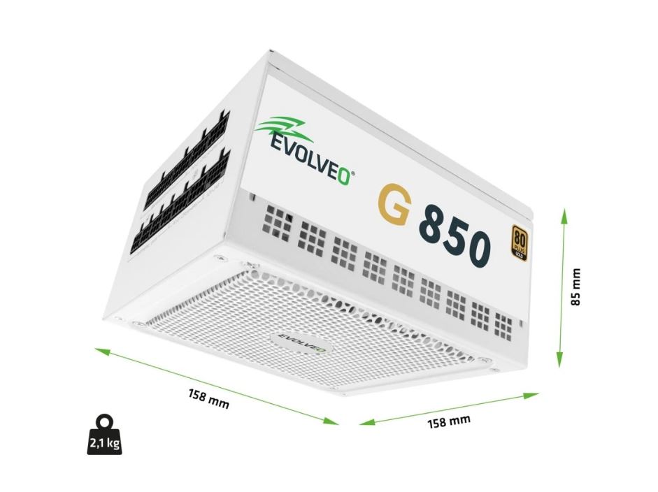 Rozjeďte na svém počítači aktuální herní hit nebo spusťte render náročného videa a pociťte ten masivní příval energie na vlastní kůži. Umožní vám to EVOLVEO G850-BK – herní PC zdroj, s nímž má váš počítač dostatek síly na všechny výzvy dnešního digitálního světa. Tento plně modulární 850W zdroj třídy 80 PLUS Gold je vyvedený v moderním formátu ATX 3.1 a podporuje i standard PCIe 5.1, takže s ním běží jako po másle i náročné grafické karty nové generace. Jeho pořízením si zkrátka zajistíte bezpečné, stabilní a efektivní napájení, které vaše herní doupě napumpuje energií, již si zaslouží.