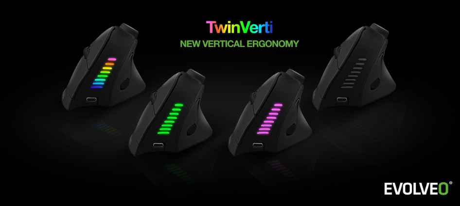 Ergonomická řada vertikálních myší EVOLVEO vás zaručeně zbaví bolesti zápěstí a únavy při práci s myší. Dostane vaši ruku do přirozené polohy, kdy nedochází ke křížení v zápěstí a ruka tak drží myš v naprosto přirozené poloze.