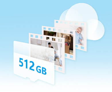 Zachyťte a uchovejte důležité okamžiky nebo nezapomenutelné vzpomínky na velké 512 GB microSD kartě nebo prostřednictvím předplatného služby EZVIZ CloudPlay.