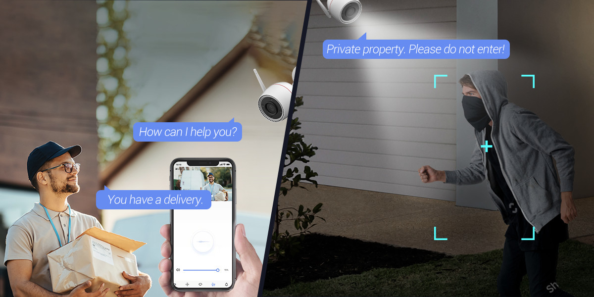 H3c 2K integruje oblíbenou funkci aktivní ochrany EZVIZ, která poskytuje další vrstvu ochrany. Při detekci narušitele kamera spustí hlasitou sirénu a zabliká dvěma reflektory, aby ho varovala.