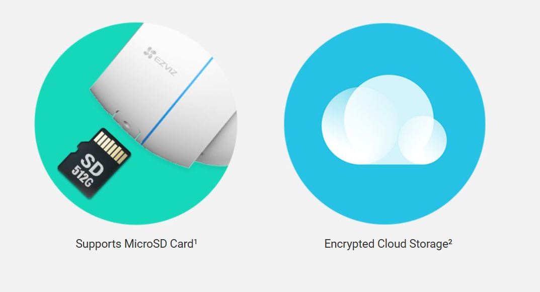 Nahraná videa můžete zabezpečit na místní kartě microSD s kapacitou až 512 GB nebo si předplatit službu EZVIZ CloudPlay pro plně šifrované cloudové úložiště.