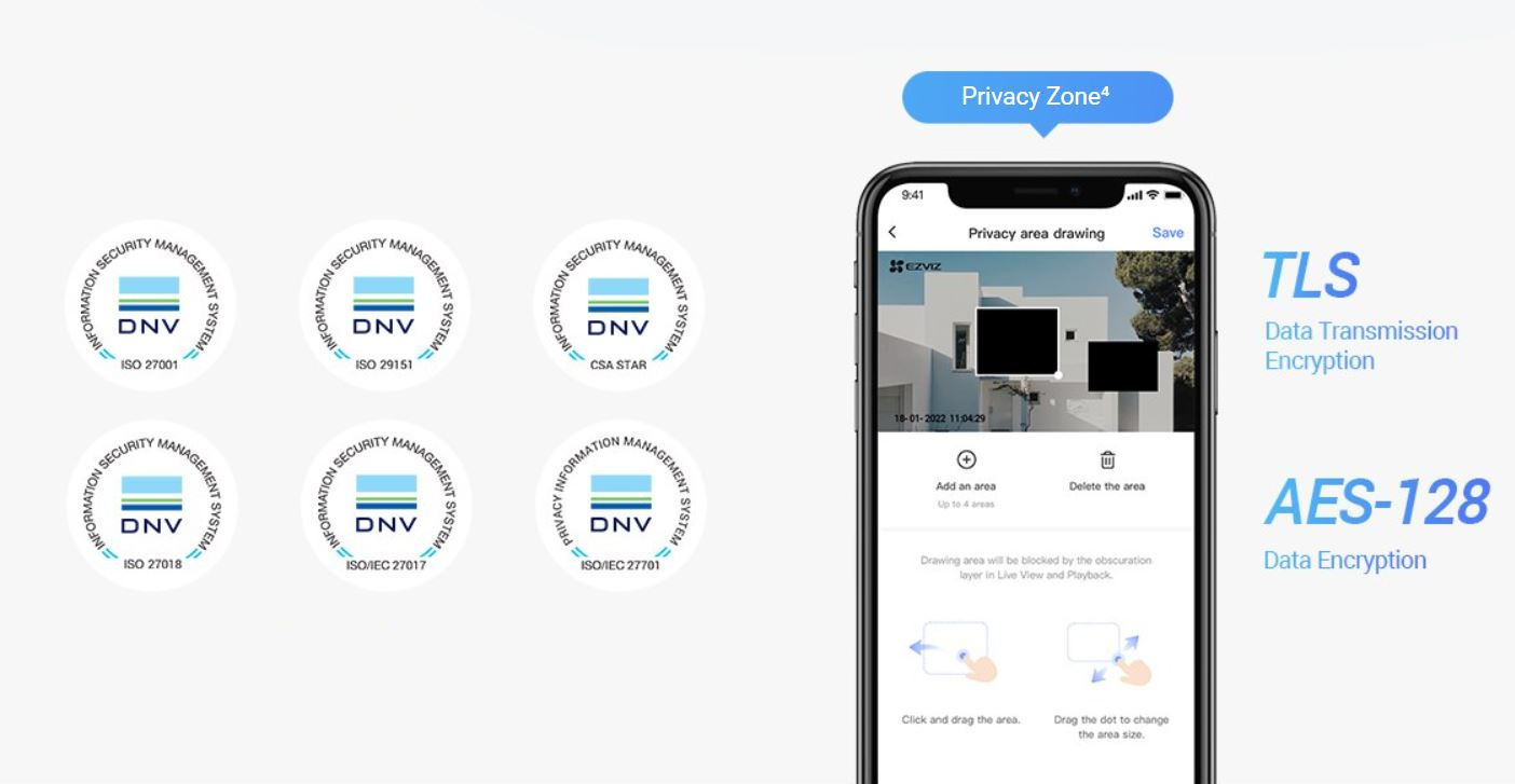 Společnost EZVIZ získala certifikát DNV pro informační bezpečnost (ISO/IEC 27001:2013), ochranu osobních údajů (ISO/IEC 27701:2019), bezpečnost cloudu (CSA STAR) a další.