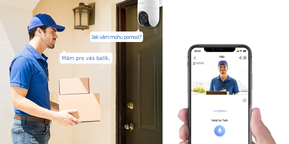 Se zařízením H8c můžete jednoduše použít svůj chytrý telefon, abyste slyšeli a mluvili s doručovatelem, přivítali hosty nebo požádali cizí lidi, aby opustili váš pozemek, i když nejste doma.