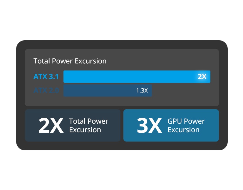V souladu s nejnovějšími specifikacemi ATX 3.1 a PCIe Gen 5.1 podporuje tato řada dvojnásobný celkový výkon a trojnásobný výkon GPU pro zajištění špičkového výkonu s moderním hardwarem nebo budoucími upgrady.