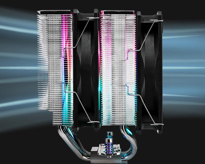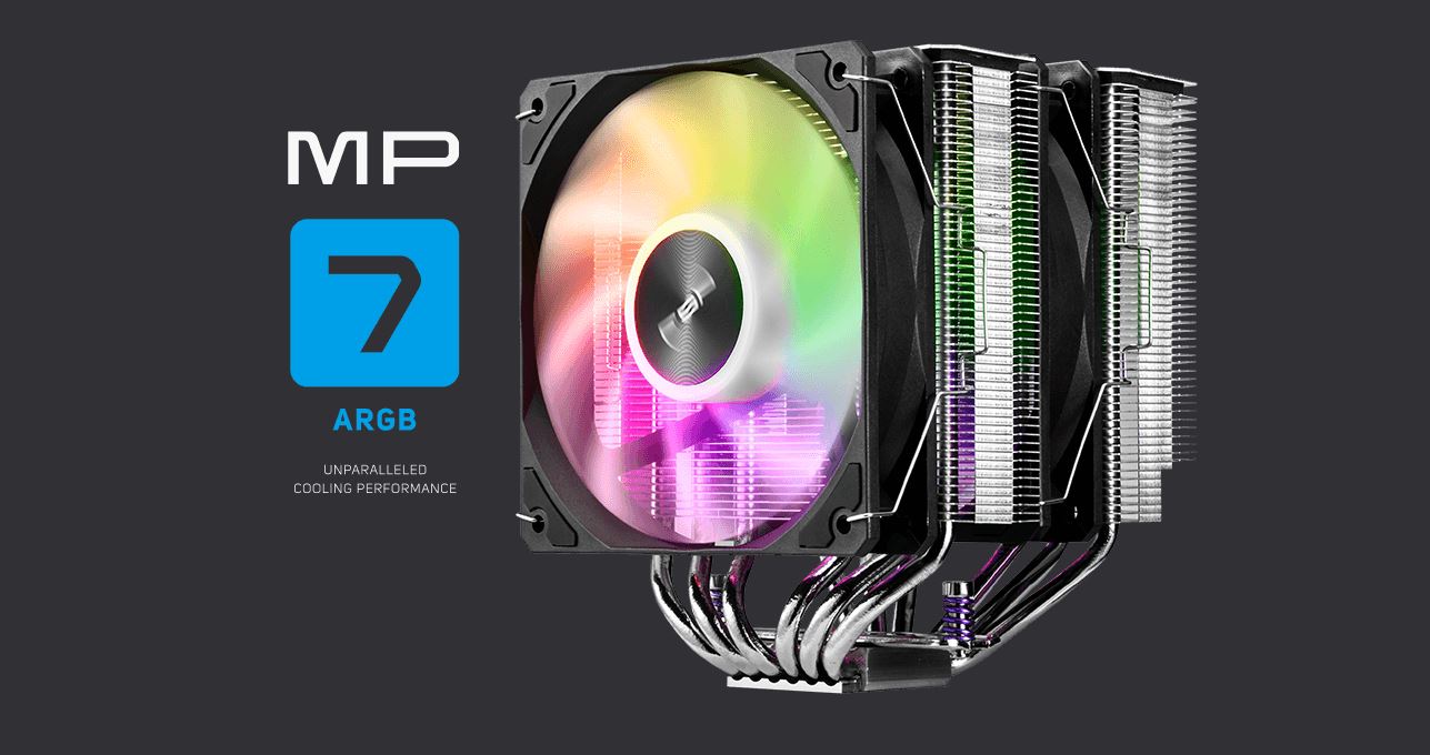 Model MP7 je vybaven dvěma chladiči a dvěma 120mm ventilátory pro maximalizaci tepelného výkonu, což z něj činí ideální volbu pro hráče a overclockery, kteří vyžadují vysoce výkonné chlazení pro extrémní tepelné zatížení.