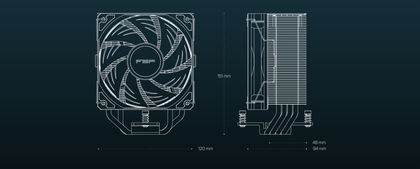 S rozměry 94 mm do hloubky a 151 mm na výšku nabízí 100% volný prostor pro RAM.
