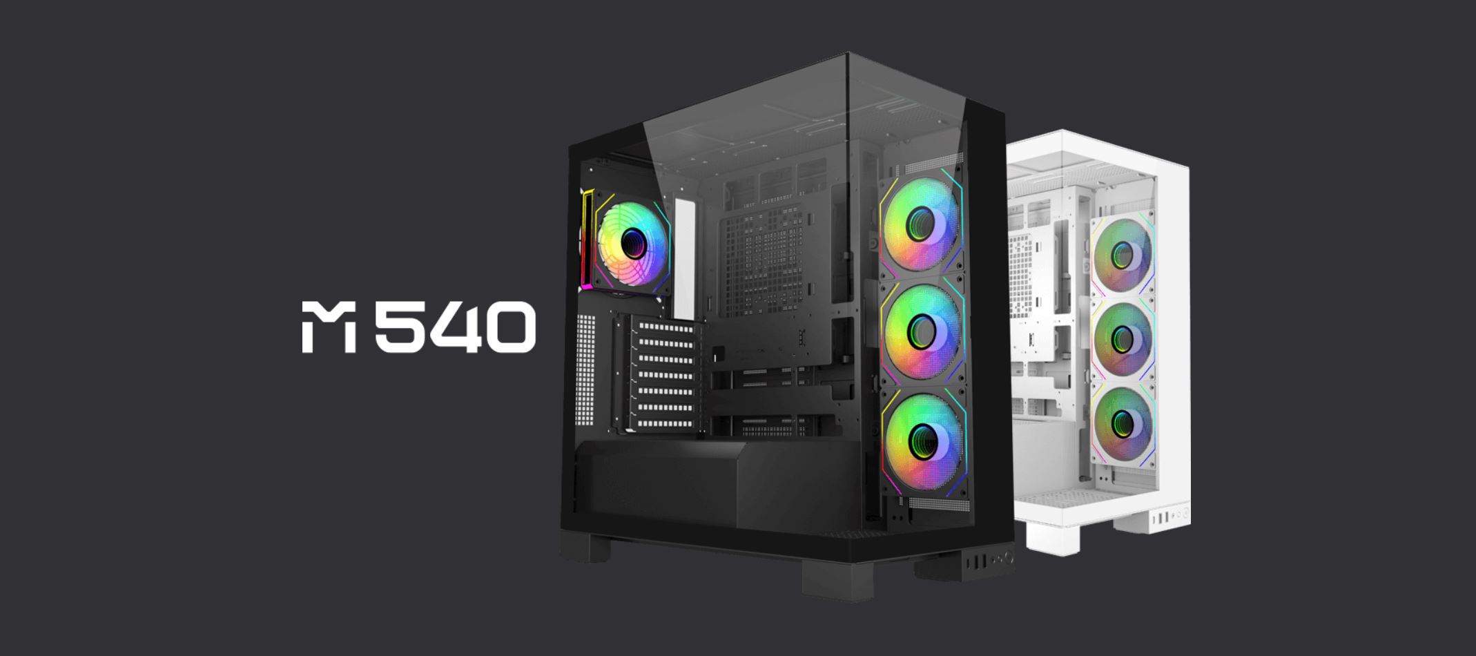 Skříň počítače M540 je navržena v moderním minimalistickém stylu a je k dispozici v klasické černé a elegantní bílé barvě, aby ladila s jakýmkoli prostředím. Její čisté linie a panel z tvrzeného skla krásně zdůrazní vaši sestavu.