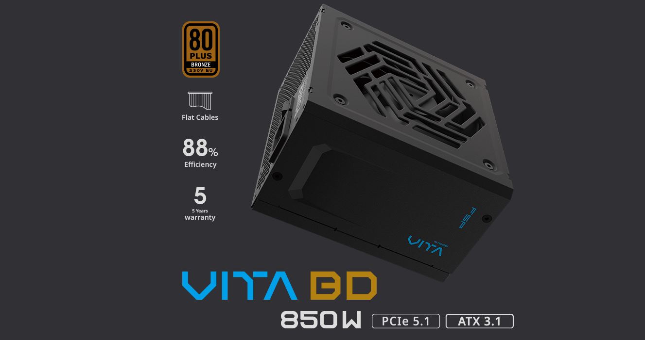 Řada VITA BD je kompatibilní s nejnovější normou ATX 3.1, která podporuje až 200% překročení výkonu, a s novým konektorem rozhraní PCIe 12 V-2x6, které zajišťuje špičkový výkon při budoucích upgradech hardwaru.