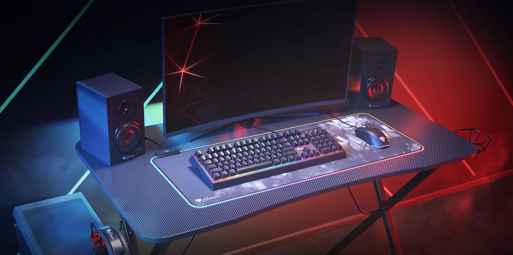 Genesis HOLM 200 je vysoce kvalitní stůl určený pro náročné hráče. Další výbava, jako jsou držáky nebo vestavěné porty USB, umožňuje dlouhé hodiny příjemného hraní. O požadované klima se postará osvětlení RGB, díky kterému si svůj nový kokpit pro virtuální bitvy zamilujete.