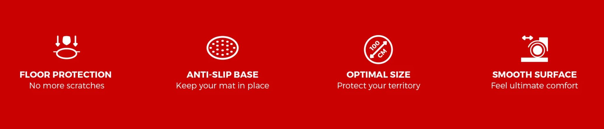 Velká plocha rohože = více prostoru pro vás a méně škrábanců na podlaze. Až 100 cm v průměru se postará o vaše pohodlí, ať už vedete klidnou hru, nebo se účastníte dynamického střetu.