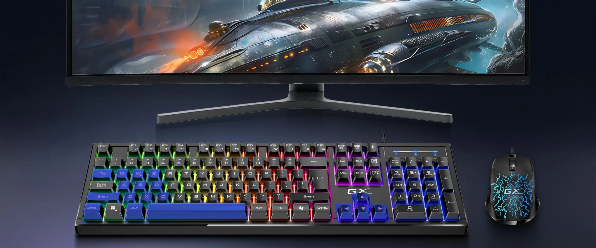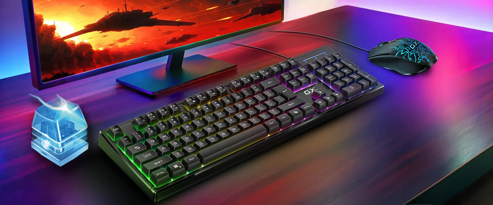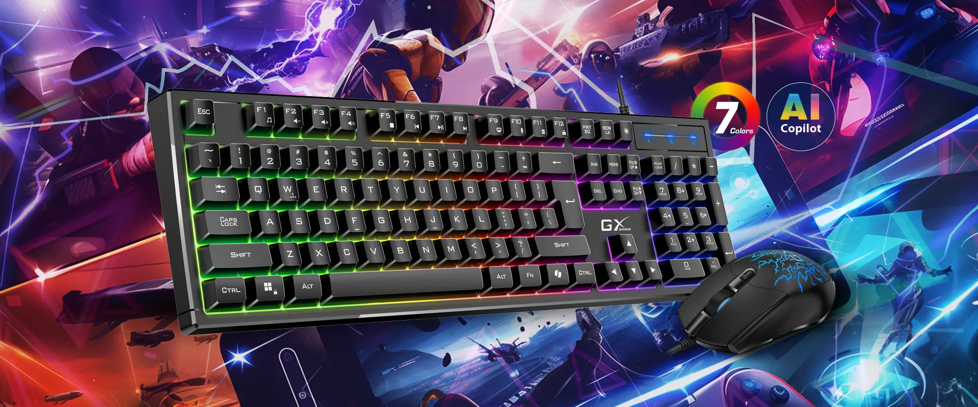 Klávesnice a myš s RGB podsvícením v sedmi barvách a senzorem 2400 DPI zpříjemní vaše hraní díky jasným barvám a osvětlení, které vytváří skvělou vizuální atmosféru.