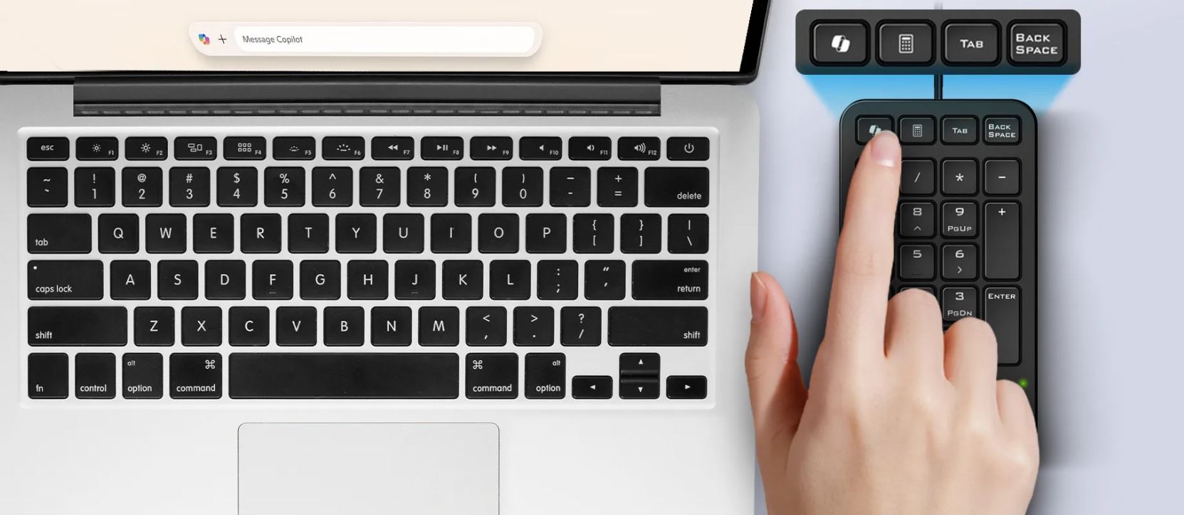 Stiskněte klávesu AI Copilot pro spuštění asistenta Copilot (pro Windows 11)! Nebo použijte jiné klávesy jako Tab, Backspace a Kalkulačka pro pohodlnější práci.