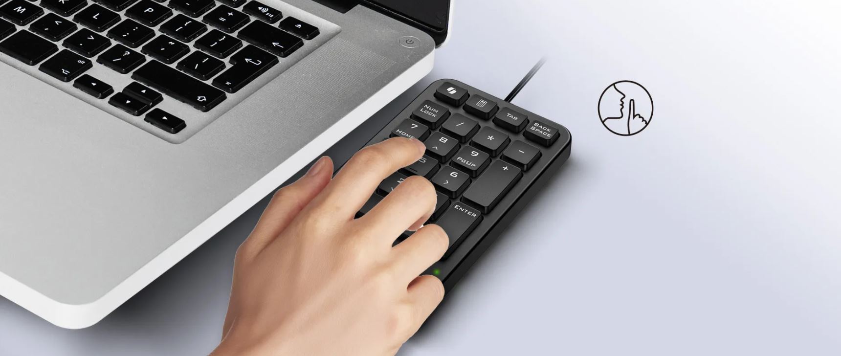 Numerická klávesnice je vybavena opěrkou zápěstí pro větší pohodlí a menší zátěž.