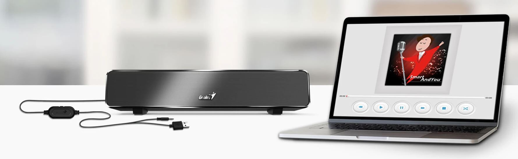 USB SoundBar 100 poskytuje křišťálově čistý, fascinující zvuk, který vám přináší úžasný prostorový mediální zážitek.