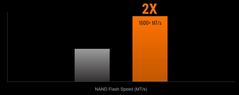 Ultrarychlostní 3D TLC NAND Flash pracuje s rychlostí přes 1600 MT/s, což je o 50 % více než u předchozí verze, což vede k lepšímu výkonu.