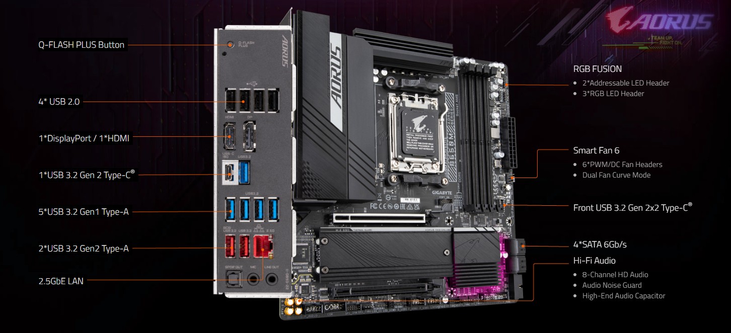 - AMD Socket AM5: Podporuje procesory řady AMD Ryzen™ 7000/ Ryzen™ 8000/ Ryzen™ 9000