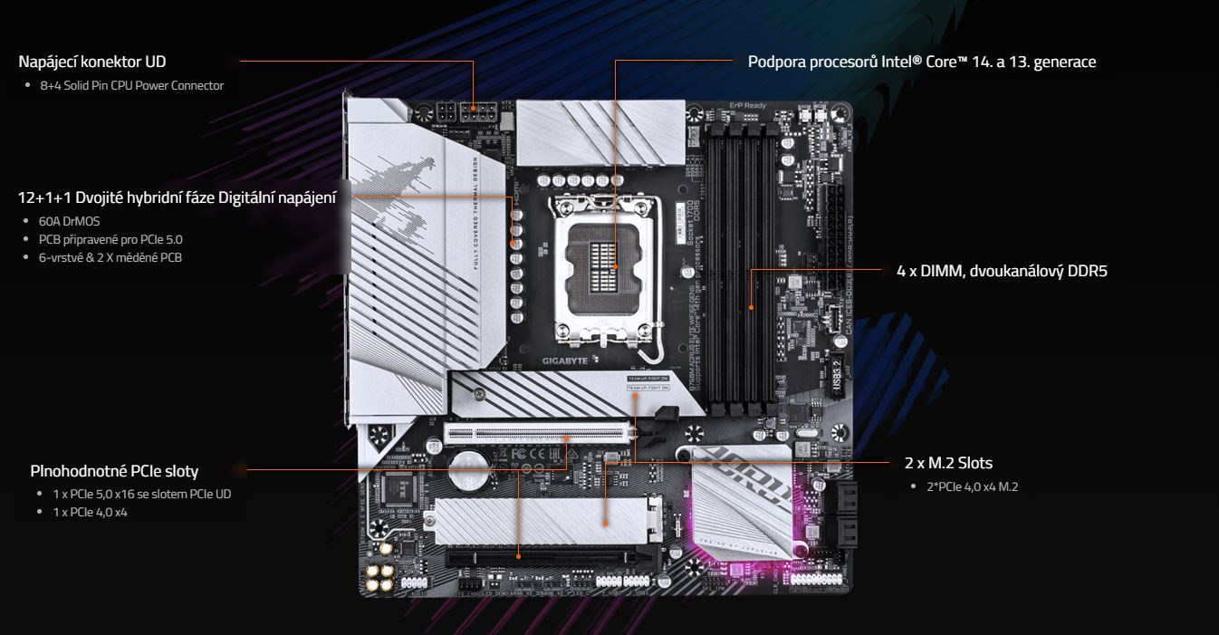 | Podpora generace CPU | 12. A 13. GEN. INTEL |