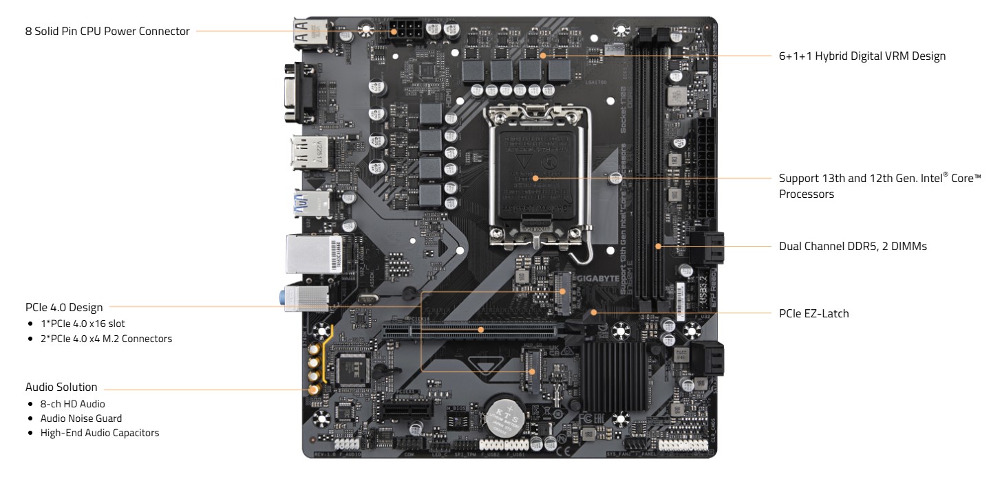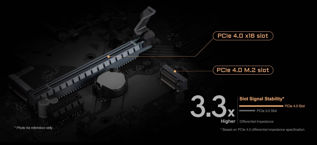 Základní desky GIGABYTE B760 jsou připraveny na práci se zařízeními PCIe 4.0, u kterých se očekává trojnásobná šířka pásma oproti současným zařízením PCIe 3.0. Pro dosažení vysoké rychlosti a zachování dobré integrity signálu používá výzkum a vývoj GIGABYTE nízkoimpedanční PCB, které poskytuje maximální výkon.