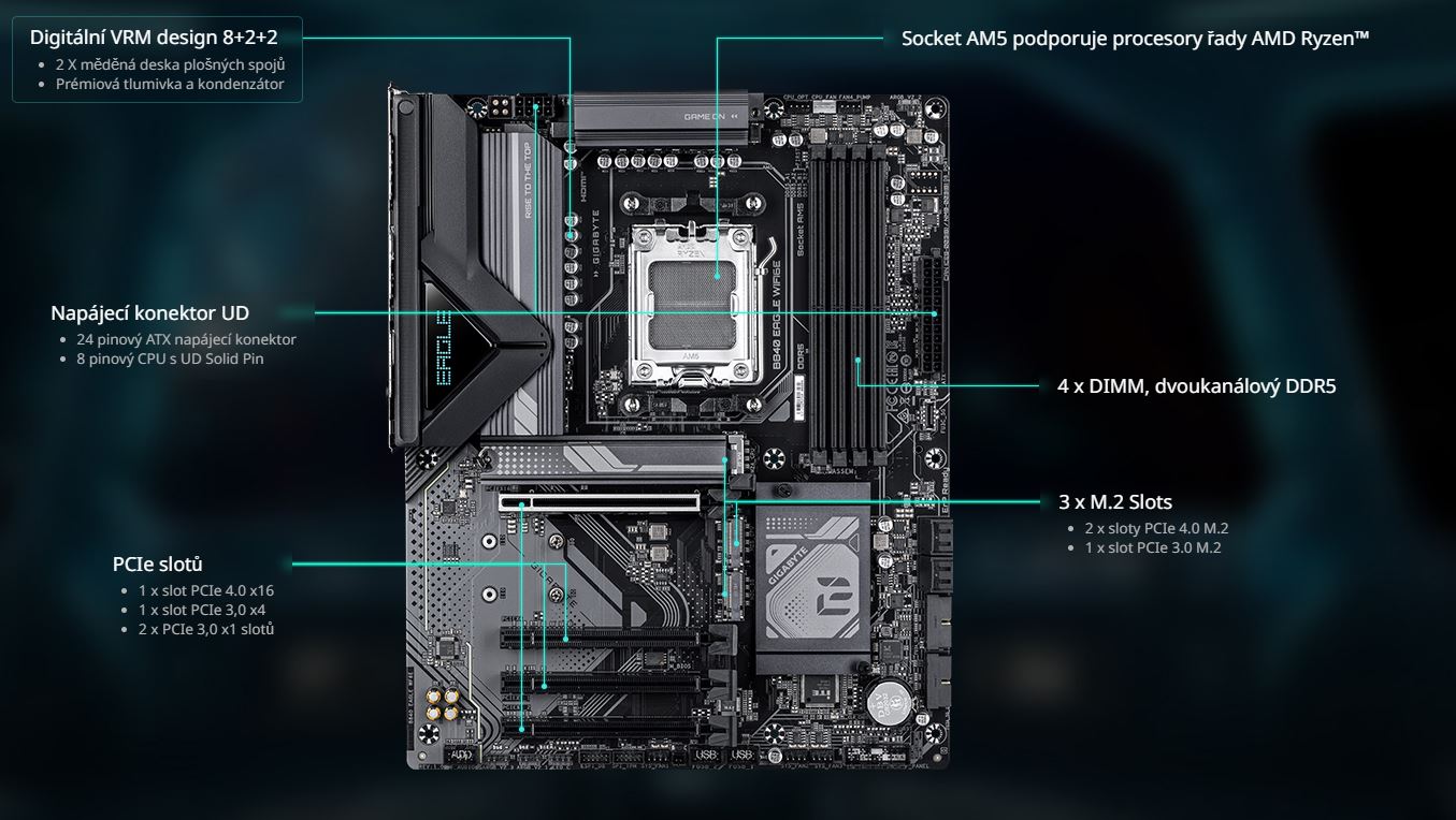 | Podpora generace CPU | 7. AŽ 9. GEN RYZEN |