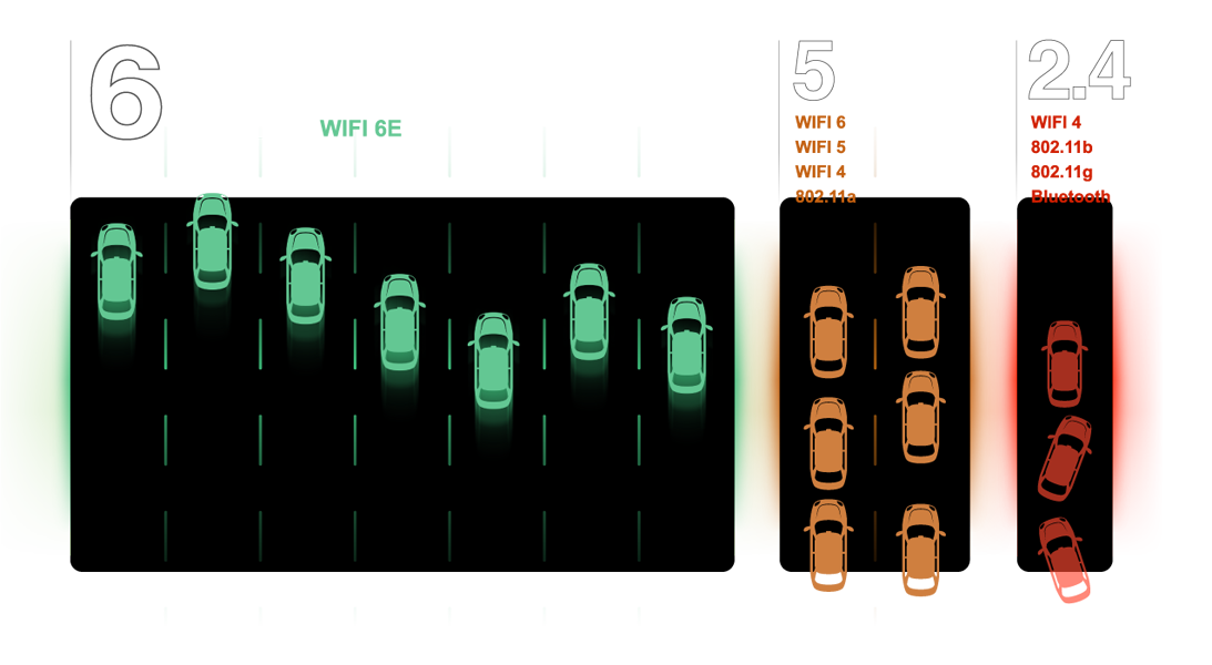 Přetížení spektra je v současné době velkým problémem v prostředí Wi-Fi, protože příliš mnoho zařízení využívá stávající 2,4GHz a 5GHz spektrum, což způsobuje nespolehlivé připojení a nižší rychlost. Wi-Fi 6E je rozšířený standard Wi-Fi 6 a využívá vyhrazené 6GHz pásmo, které poskytuje nejen zcela novou frekvenci pro přenos dat, ale také prostorné spektrum pro další zařízení. Díky Wi-Fi 6E si uživatelé mohou užívat rychlejší připojení a silnější signál než dříve.