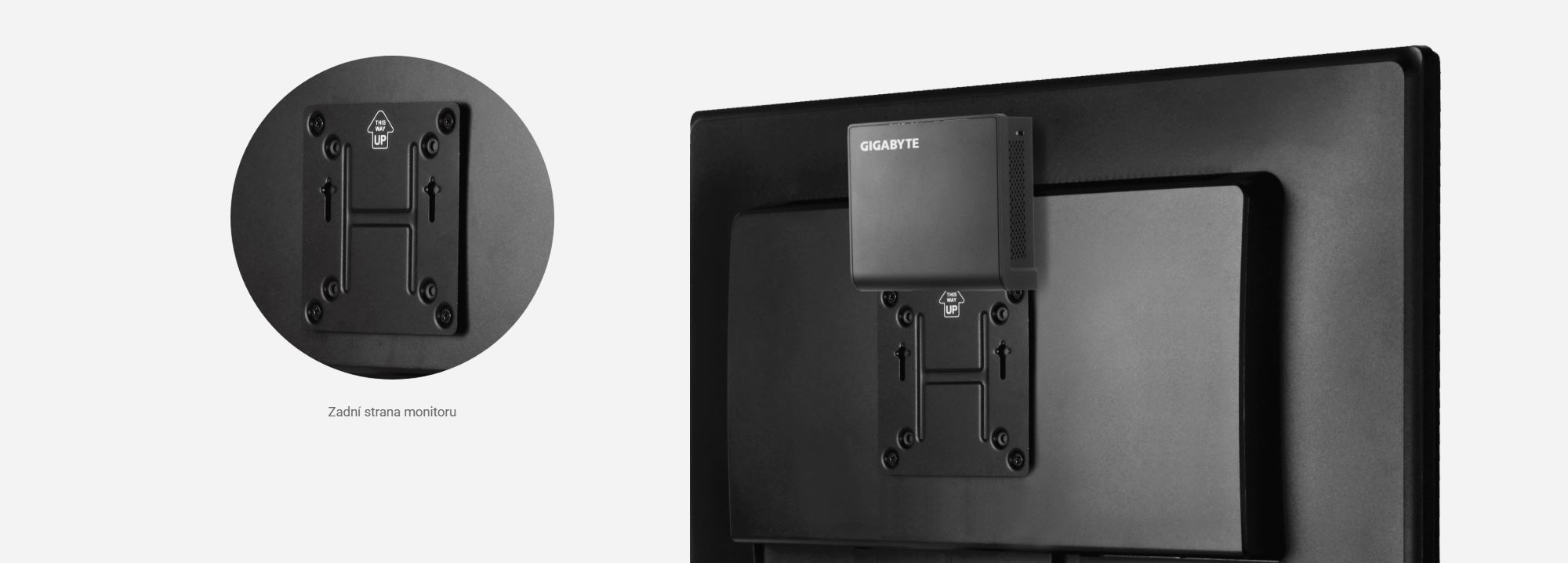 Díky přiloženému držáku VESA lze BRIX snadno namontovat na zadní stranu monitoru nebo HD televizoru. BRIX tak nabízí jednoduchý a efektivní způsob, jak proměnit jakýkoli displej či televizor s podporou standardu VESA na plnohodnotný počítač.