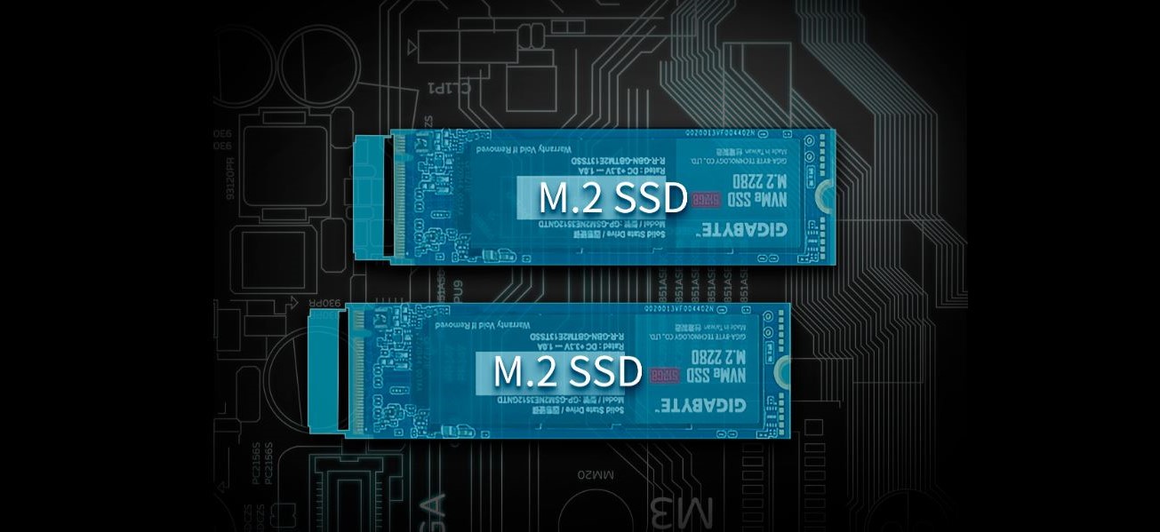 Podporuje duální SSD M.2 (2x2280) založené na technologii PCI-e/SATA. Uživatelé mohou nainstalovat dvě SSD M.2 pro rychlejší spouštění systému a načítání aplikací, stejně jako HDD s dvojnásobnou kapacitou pro všechny druhy mediálního obsahu, souborů a dokumentů bez omezení místa.