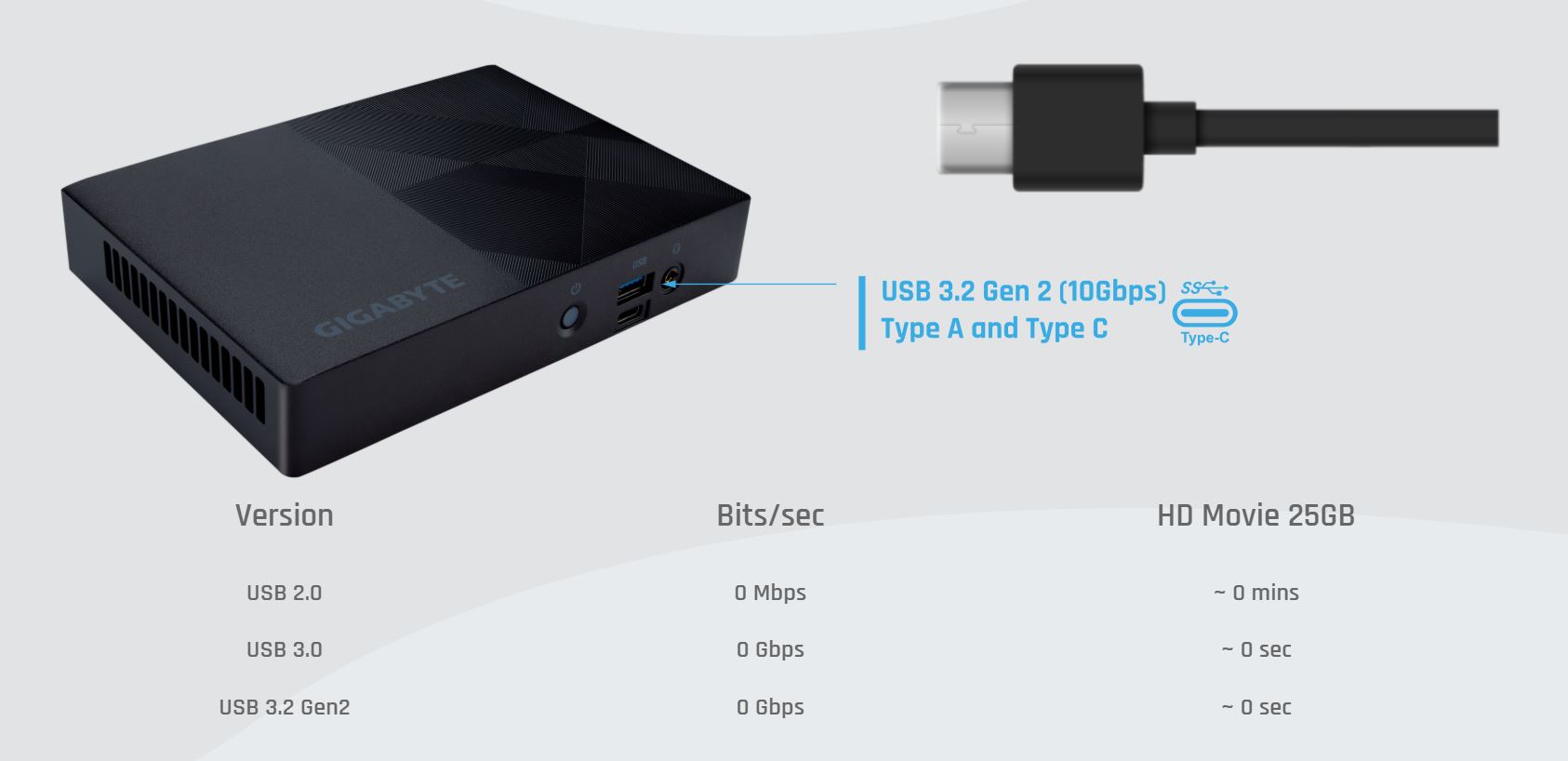 USB typu C™ je nový oboustranný konektor, který nabízí řadu užitečných funkcí, včetně podpory USB 3.2 gen2, které poskytuje přenosové rychlosti až 10 Gb/s.