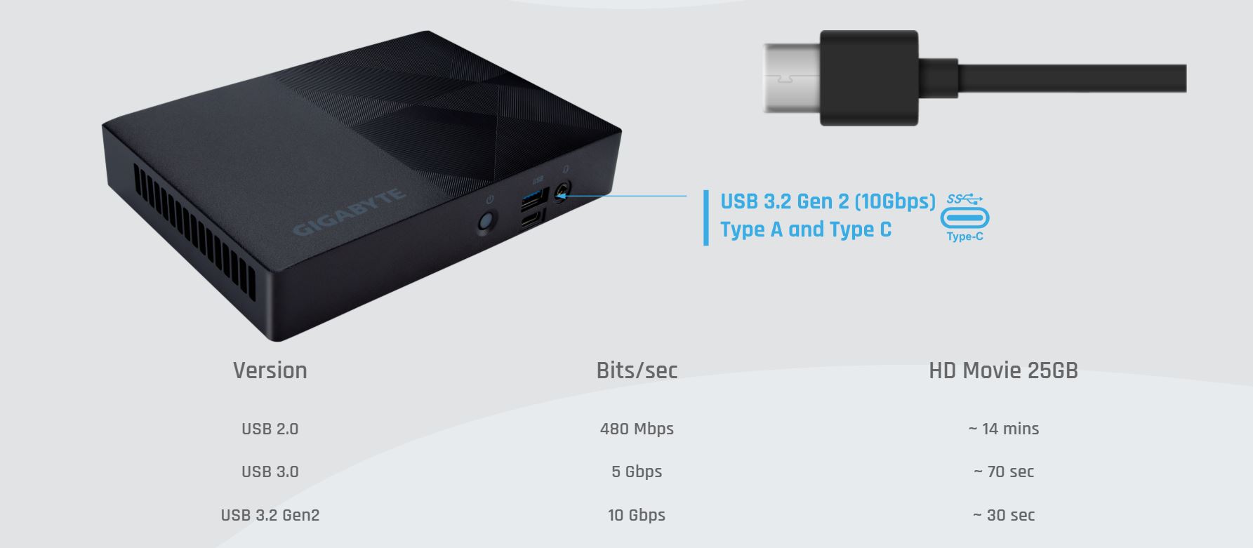 USB typu C™ je nový oboustranný konektor, který nabízí řadu užitečných funkcí, včetně podpory USB 3.2 gen2, které poskytuje přenosové rychlosti až 10 Gb/s.