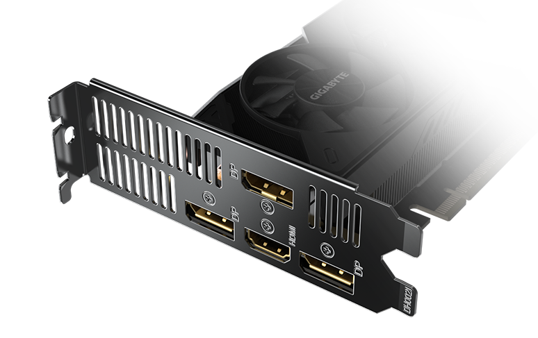 Užívejte si všestranné možnosti zobrazení díky třem portům DisplayPort a jednomu portu HDMI, které podporují až čtyři displeje současně. Splňuje nároky sestav s více displeji, aplikací s vysokým rozlišením a poskytuje dokonalý herní výkon.