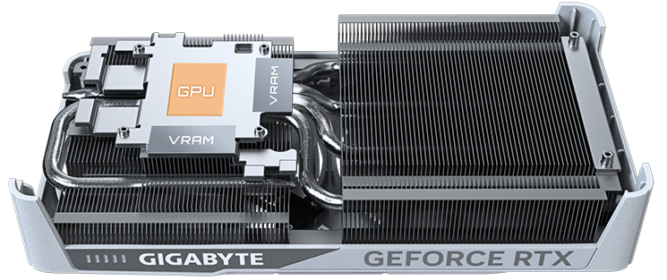 Měděná deska se přímo dotýká grafického procesoru a ve spojení s kompozitními měděnými tepelnými trubicemi rychle přenáší teplo z grafického procesoru a VRAM do chladiče.