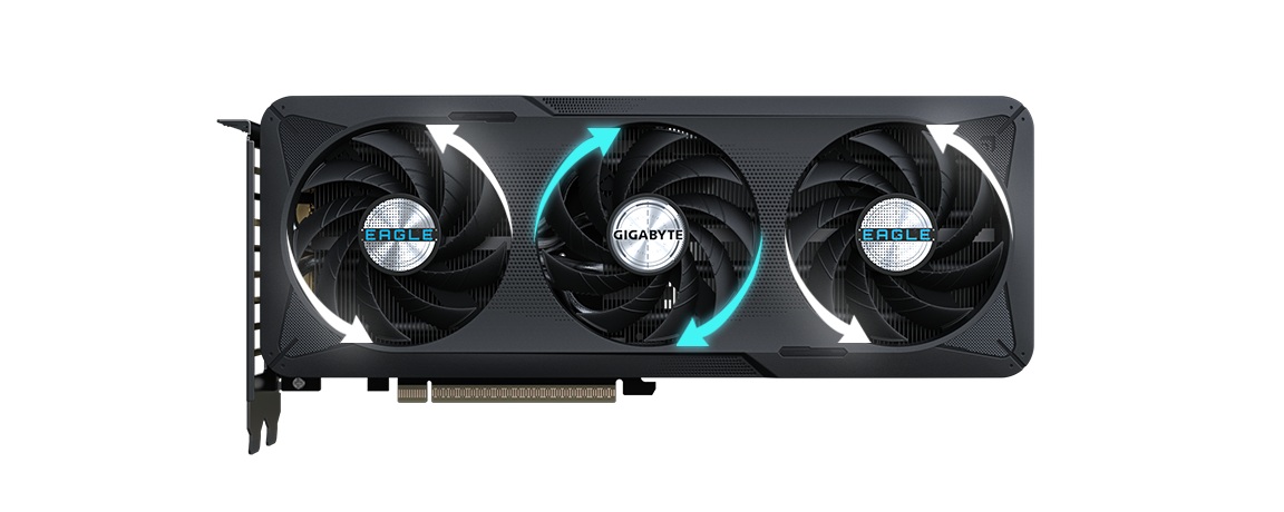 Chladicí systém WINDFORCE poskytuje výjimečný tepelný výkon díky kombinaci nejmodernějších technologií. Je vybaven tepelným vodivým gelem serverové třídy, inovativními ventilátory Hawk s alternativním otáčením, kompozitními měděnými tepelnými trubicemi, měděnou deskou, 3D aktivními ventilátory a chlazením obrazovky.
