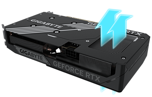 Chladicí systém WINDFORCE poskytuje výjimečný tepelný výkon díky kombinaci nejmodernějších technologií. Je vybaven tepelným vodivým gelem serverové třídy, inovativními ventilátory Hawk s alternativním otáčením, kompozitními měděnými tepelnými trubicemi, měděnou deskou, 3D aktivními ventilátory a chlazením obrazovky.