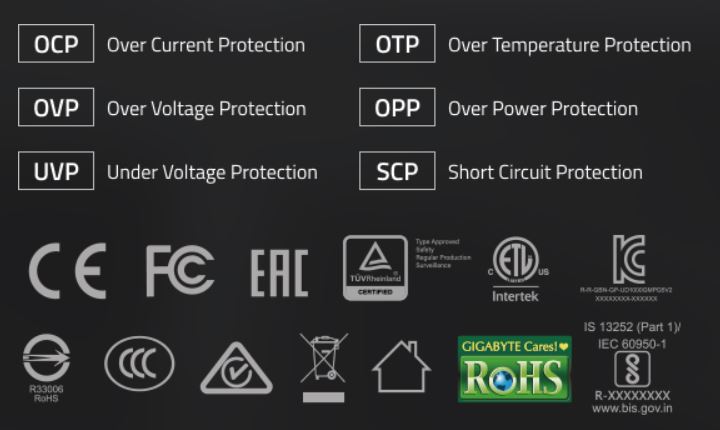 Pro zajištění stabilního provozu za jakýchkoliv podmínek je integrováno více ochranných prvků. Napájení je také podpořeno bezpečnostními certifikacemi z různých zemí, které poskytují větší klid.