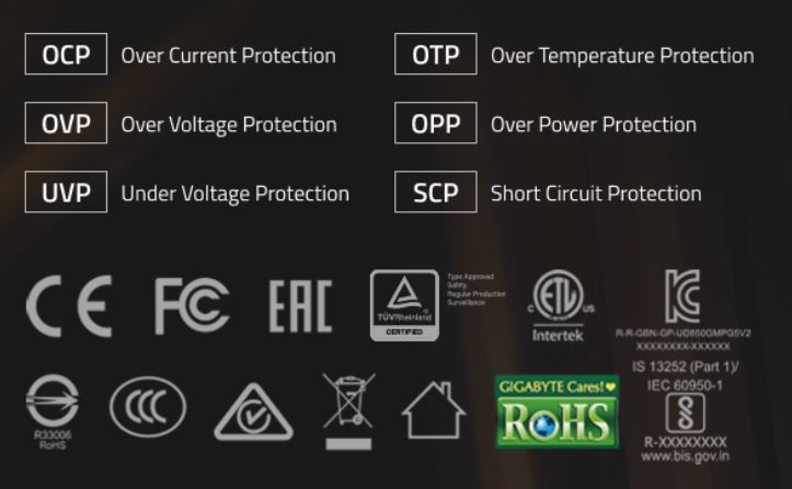 Pro zajištění stabilního provozu za jakýchkoliv podmínek je integrováno více ochranných prvků. Napájení je také podpořeno bezpečnostními certifikacemi z různých zemí, které poskytují větší klid.