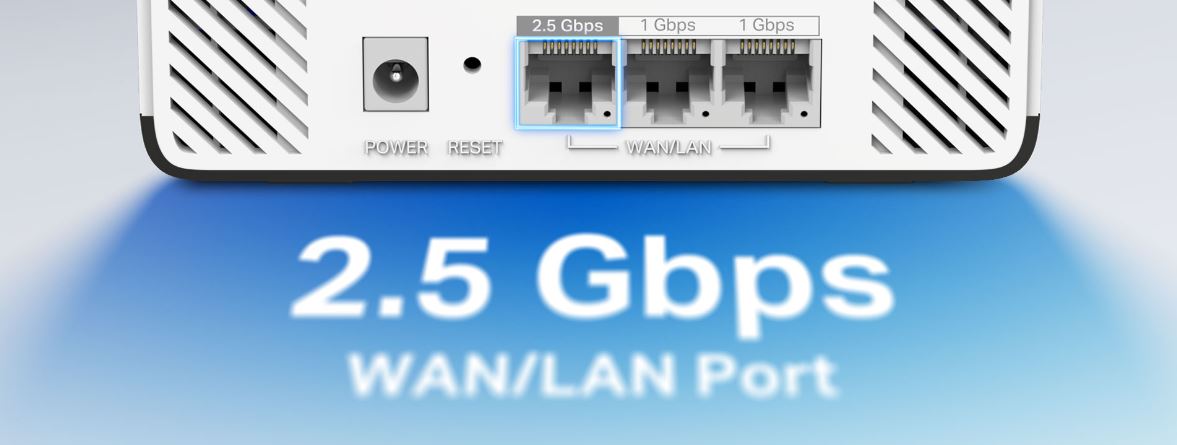 Jeden port 2,5 Gb/s a dva gigabitové porty plně využívají gigabitové rychlosti místního poskytovatele internetu. Prolomte úzké hrdlo 1G a zvyšte výkon svých zařízení na maximum. Připojte k portům počítače, chytré televizory nebo herní konzole a získejte bleskurychlé kabelové připojení.