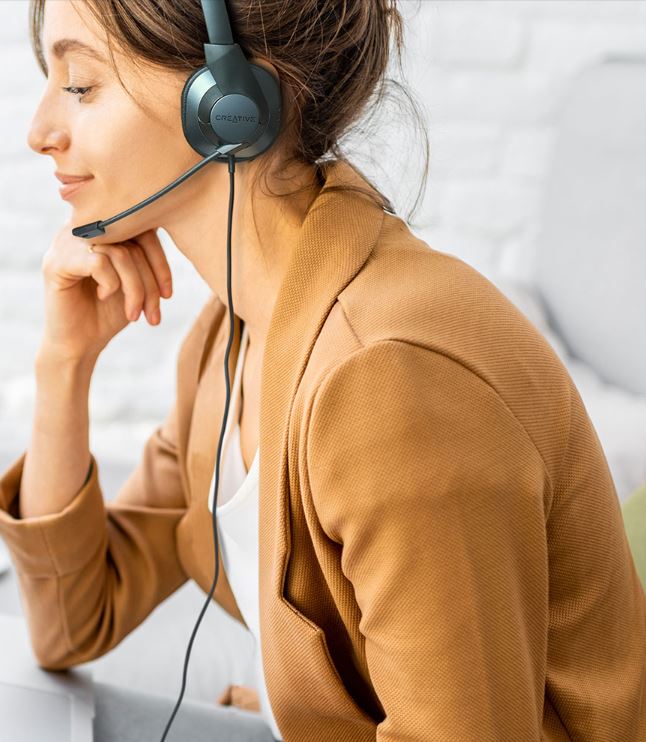 Náhlavní sada Creative HS-720 V2 má lehké provedení (135g), sedí pohodlně a nebude vás tížit ani při dlouhých schůzkách. Také jsme věnovali pozornost tomu, aby měl kabel správnou délku (2m) a dával vám dost prostoru pro pohyb a uvolnění.
