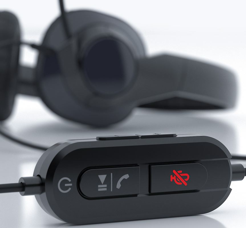 Tlačítko pro přímé ztlumení a zapnutí mikrofonu, které se nachází na ovladači integrovaném v kabelu náhlavní sady, umožňuje vypnutí a zapnutí vašeho hlasu stisknutím bez toho, že byste museli přecházet k ovládacím prvkům mikrofonu v konferenční aplikaci. Když jste ztlumeni, tlačítko mikrofonu na dálkovém ovládání svítí červeně, takže máte přehled o tom, jaký je váš stav. Integrované ovládání má také tlačítko pro přímé přijetí hovoru a tlačítka hlasitosti a přehrávání - všechny potřebné ovládací prvky máte pohodlně po ruce.