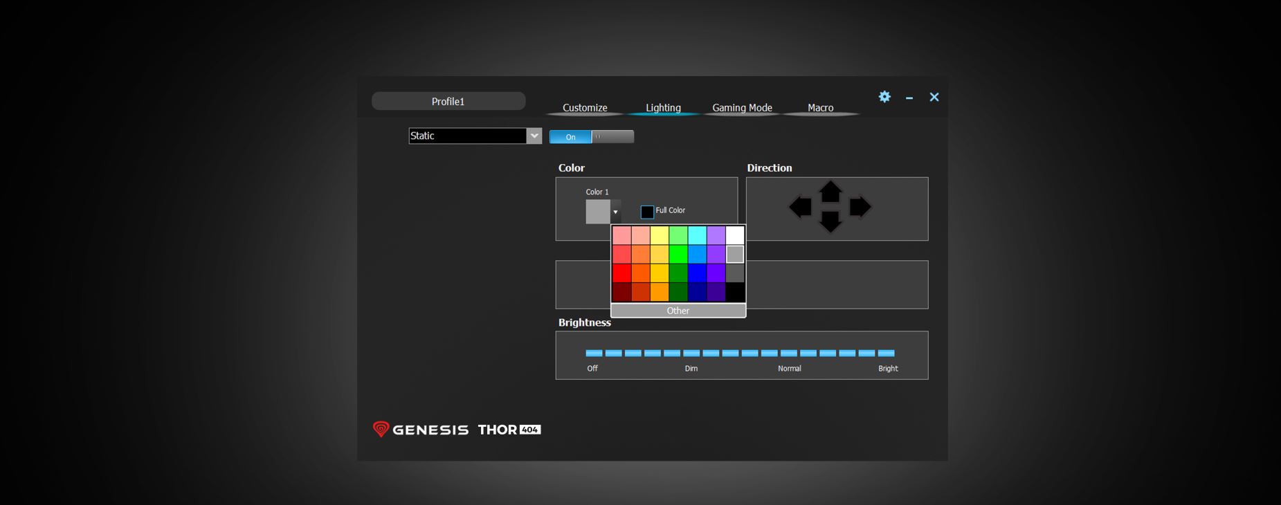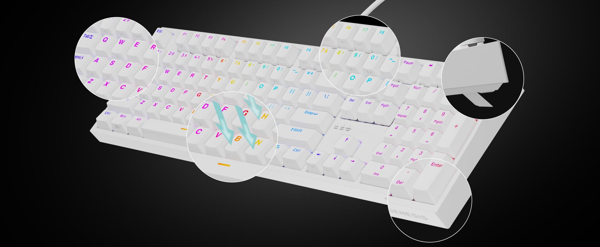 Úplná personalizace? Máme způsob, jak to udělat. Kromě užitečných funkcí, jako je plný N-Key Rollover, podporuje Genesis Thor 404 specializovaný software, který vám umožní upravit si, co chcete. Můžete si vybrat z 18 režimů podsvícení RGB, vytvářet pokročilé kombinace maker a ukládat profily. Díky vestavěné paměti si zařízení zapamatuje všechna vaše nastavení, což znamená, že i když klávesnici připojíte k jinému hardwaru, nemusíte ji znovu přizpůsobovat.