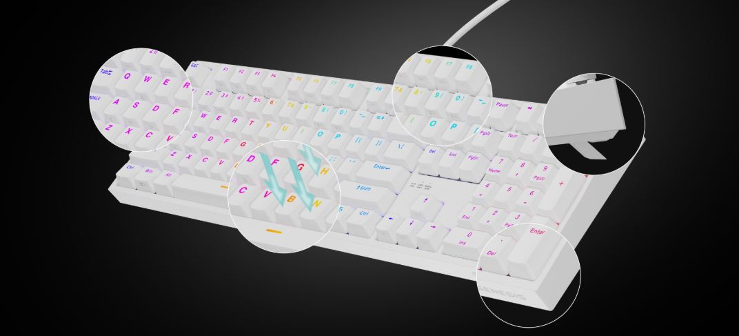 Úplná personalizace? Máme způsob, jak to udělat. Kromě užitečných funkcí, jako je plný N-Key Rollover, podporuje Genesis Thor 404 specializovaný software, který vám umožní upravit si, co chcete. Můžete si vybrat z 18 režimů podsvícení RGB, vytvářet pokročilé kombinace maker a ukládat profily. Díky vestavěné paměti si zařízení zapamatuje všechna vaše nastavení, což znamená, že i když klávesnici připojíte k jinému hardwaru, nemusíte ji znovu přizpůsobovat.