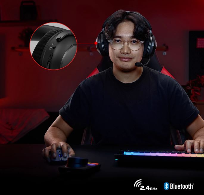 Zůstaňte připojeni bez přerušení – hrajte s nízkou latencí 2,4 GHz na jednom zařízení přes USB-C nebo USB-A a zároveň přijímejte hovory nebo posloucháte hudbu přes Bluetooth na druhém zařízení.